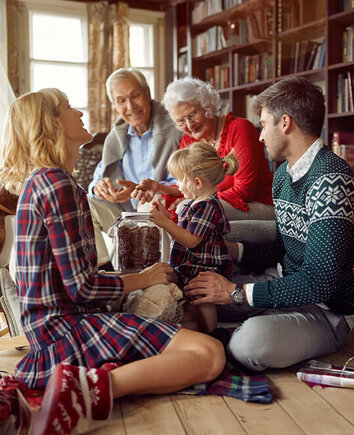 Eine illustrierte Gruppe von Menschen, die Boxen mit Buchstaben zu einem Wort zusammenstellen